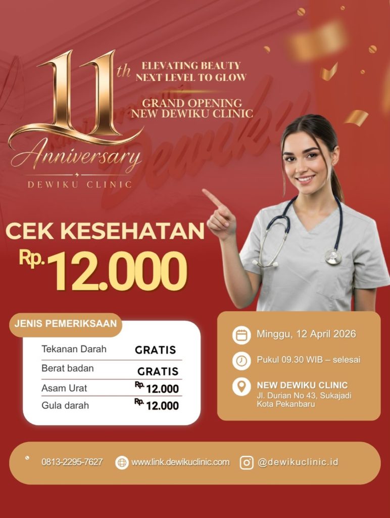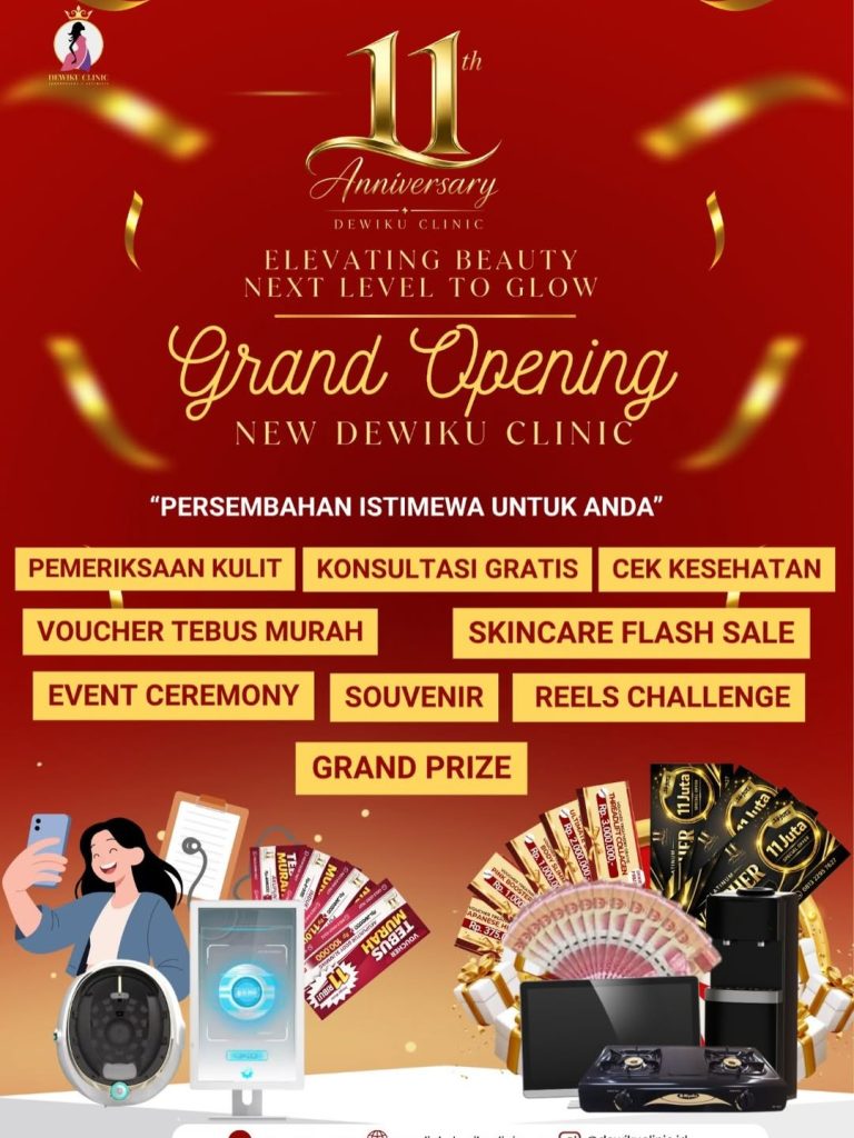 💎 Elevating Beauty, Next Level to Glow 💎Nikmati berbagai benefit spesial:✨ Pemeriksaan kulit GRATIS✨ Konsultasi GRATIS✨ Cek kesehatan✨ Voucher tebus murah✨ Skincare FLASH SALE✨ Souvenir menarik✨ Event ceremony eksklusif✨ Reels Challenge berhadiah✨ Dan tentunya… 🎁 GRAND PRIZE hingga PULUHAN JUTA RUPIAH!